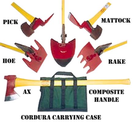 The MaxAx Multi Purpose 6 in 1 off-roaders tool. As well as an axe, it comes with a shovel, rake, hoe, pick, broad pick, and mattock. I think that ...